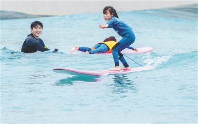 游客在万宁日月湾体验冲浪乐趣。海南日报全媒体记者 袁琛 摄
